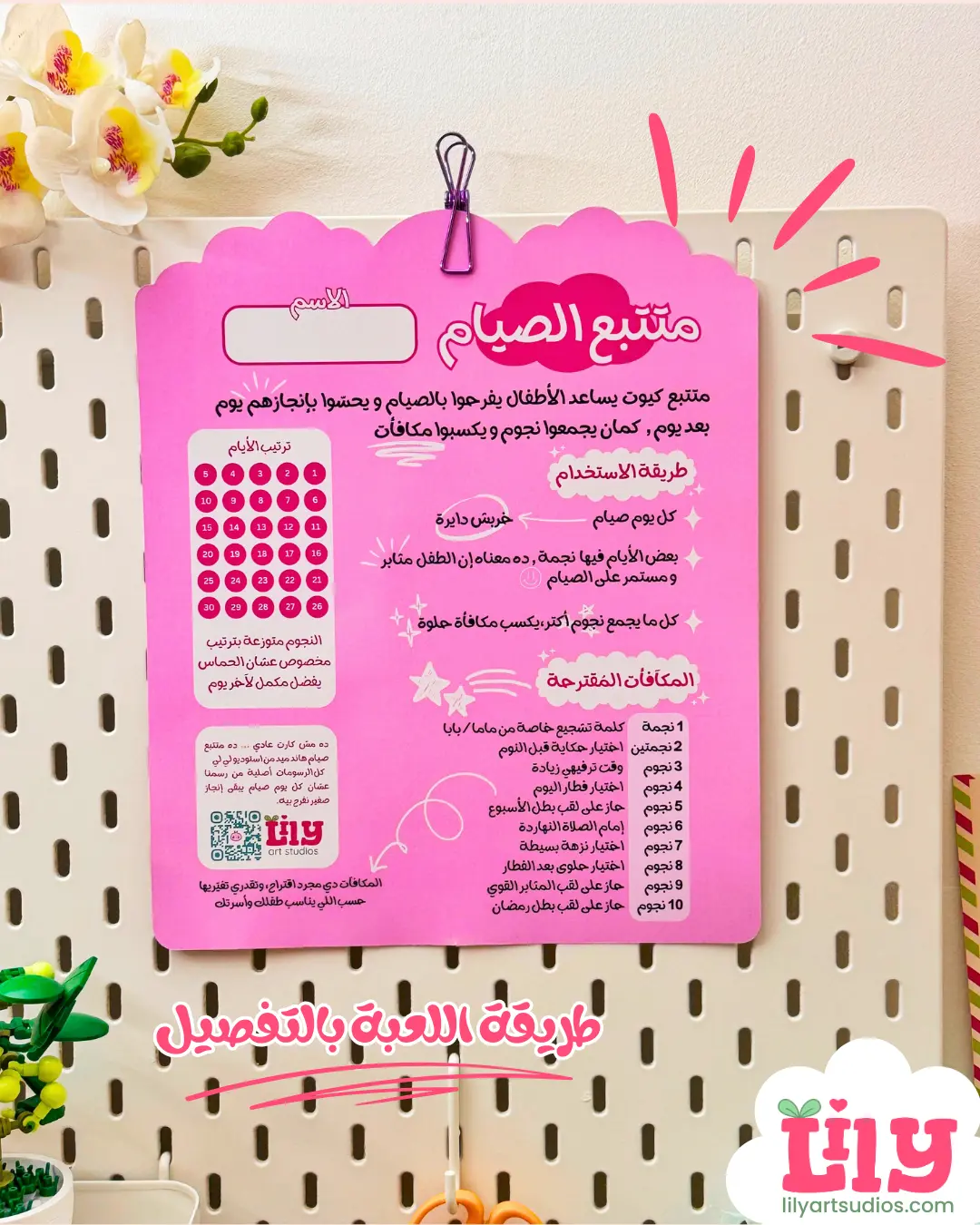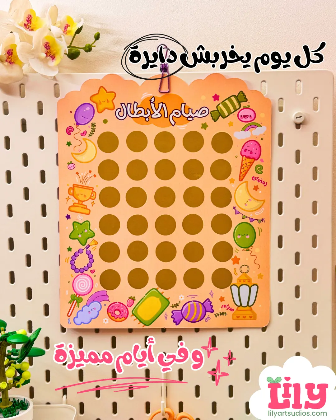 الكارت فيه 30 يوم، وكل يوم الطفل بيخربش دايرة ويحس بإنجاز صغير.