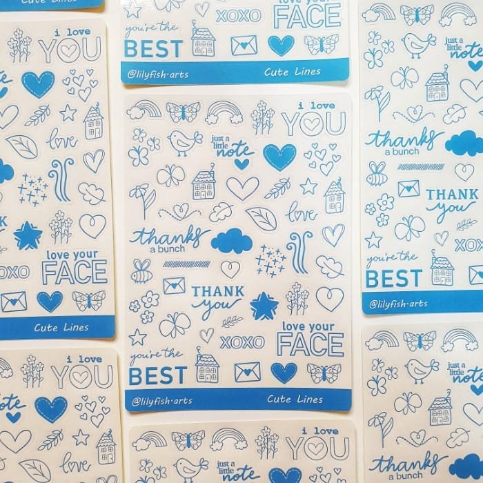 ✨Blue Cute Lines Sticker Sheet